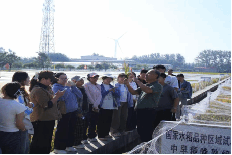 签约仪式后,师生一行开展了内容丰富的耕读实践活动。在水稻区域试验田,同学们认真聆听于福安讲解品种特性与栽培要点,对遗传育种、作物栽培等专业知识有了更为直观和深刻的理解。随后,师生共同参观了“天津市原种场成立40周年成果展”。展览通过珍贵的历史图片、实物资料和系列育种成就,系统再现了天津水稻种业四十载的奋进历程。一代代农业科技工作者“十年磨一剑”的坚守与奉献精神,深深触动了在场师生,进一步坚定了大家学农爱农、服务三农的理想信念。